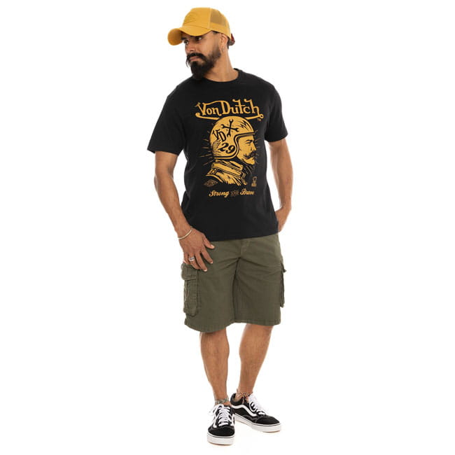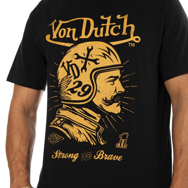 Von Dutch to amerykańska marka odzieżowa nazwana pośmiertnie na cześć Kenny'ego Howarda, znanego również jako „Von Dutch”, amerykańskiego mechanika motocyklowego, artysty i pinstripera. W naszej kolekcji mamy fajne koszule, bluzy, bluzy z kapturem, t-shirty i czapki. Całość wykonana z bawełny lub mieszanki bawełny z elastanem.