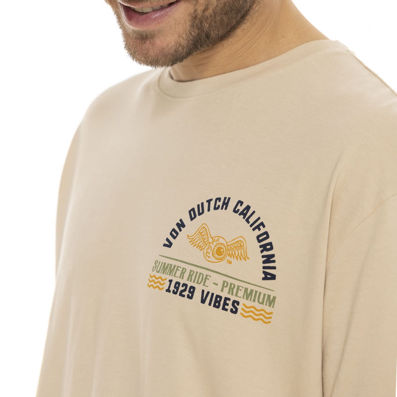 Von Dutch Vibes t-shirt beige jasna koszulka motocyklowa z retro motocyklem