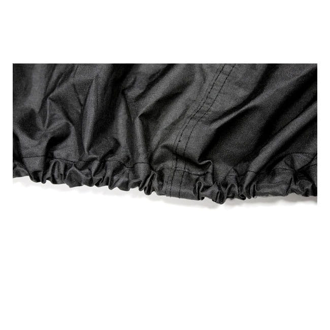 Includes an antenna grommet kit. Manufactured from innovative UltraMax® durable polyester material, 100% waterproof including heat taped seams with the highest UV rating in the industry. Integrated heat-resistant panels for exhaust pipe protection. Exclusive Perma-Venting® system allows air circulation. Soft windshield liner protects against scratching, reflective strip along sides and back for enhanced visibility. Snug elastic hem and quick release belly strap secures cover to the bike. Grommets at front wheel for cable lock (not included). Packed in multi-use compression bag for compact storage. Approx. dimensions: 127" long x 66" high x 44" wide.