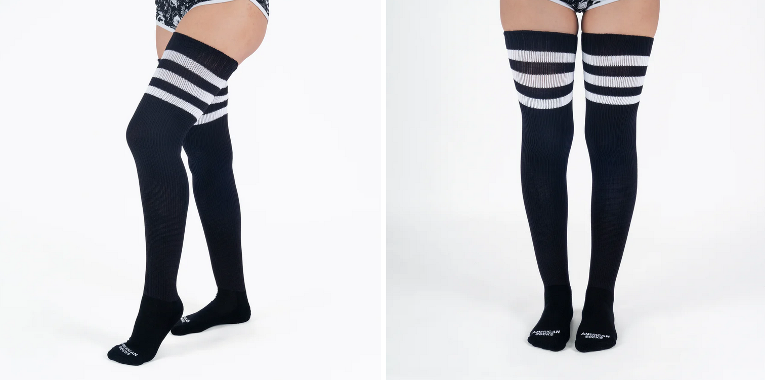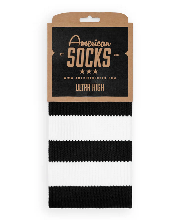 Wysokie skarpetki American Socks Ultra high Back in black triple white striped wysikie skarpety za kolano