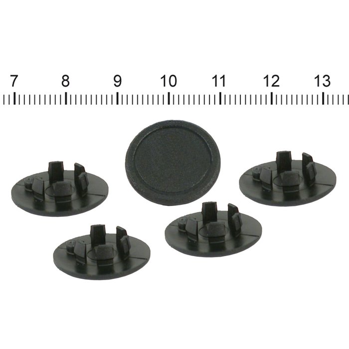 Black. Fits .406" (10.3mm) hole diameter. Used to plug the unused rear seat mount hole in the fender, when converting to a solo seat.