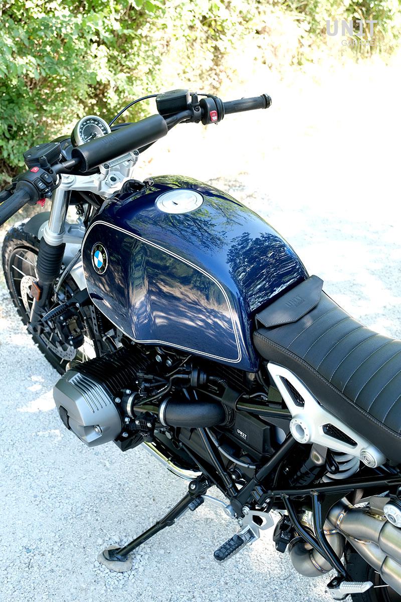 Zbiornik paliwa bak BMW R NineT /7 - niebieski + czarna kieszeń