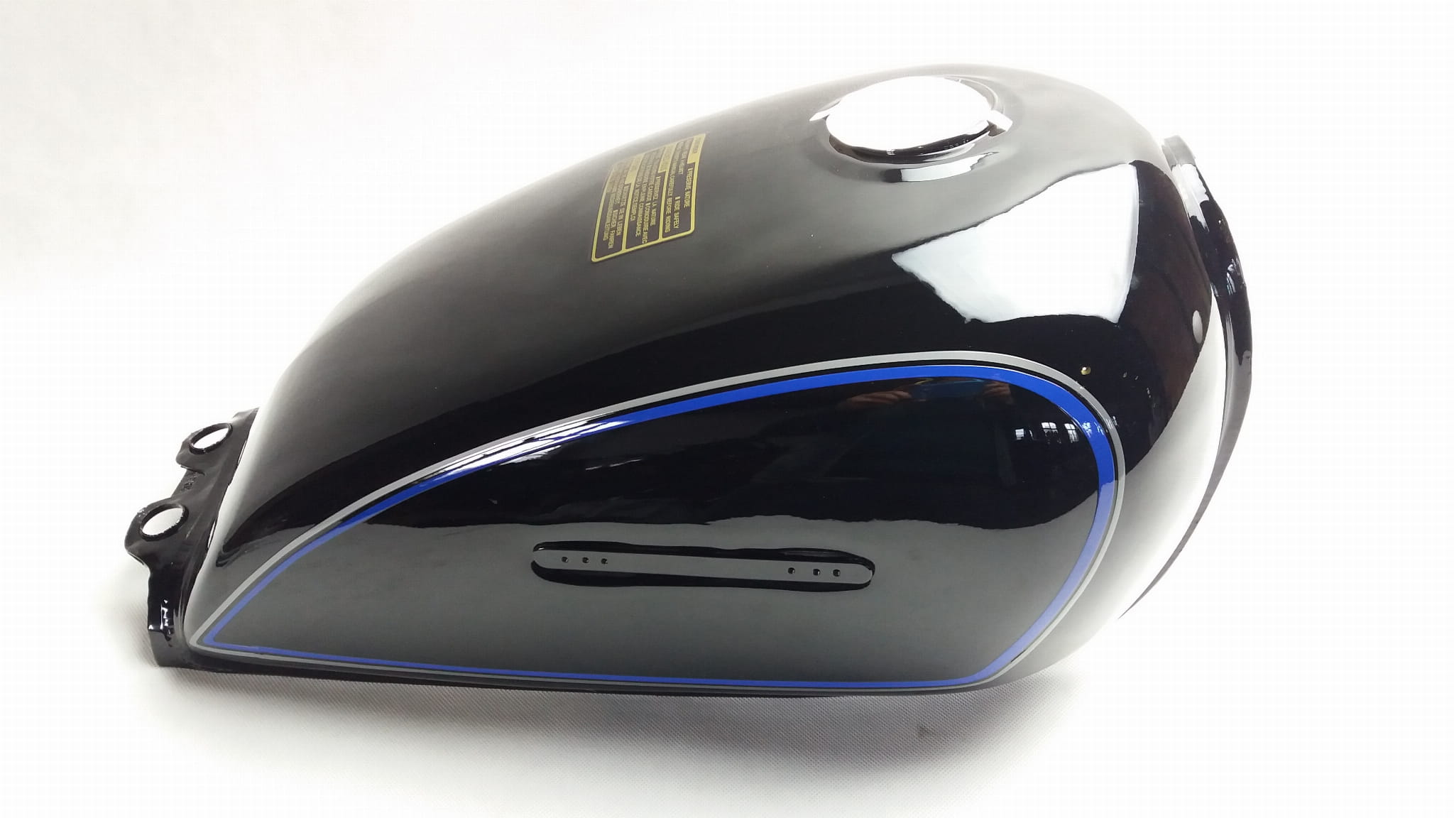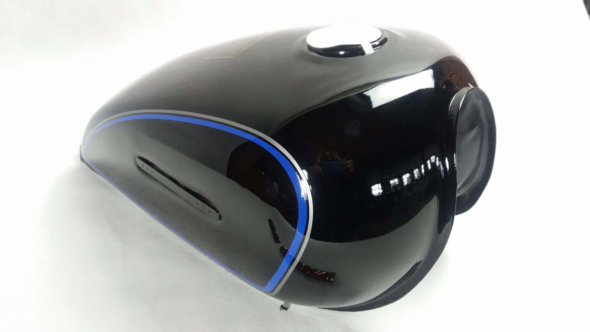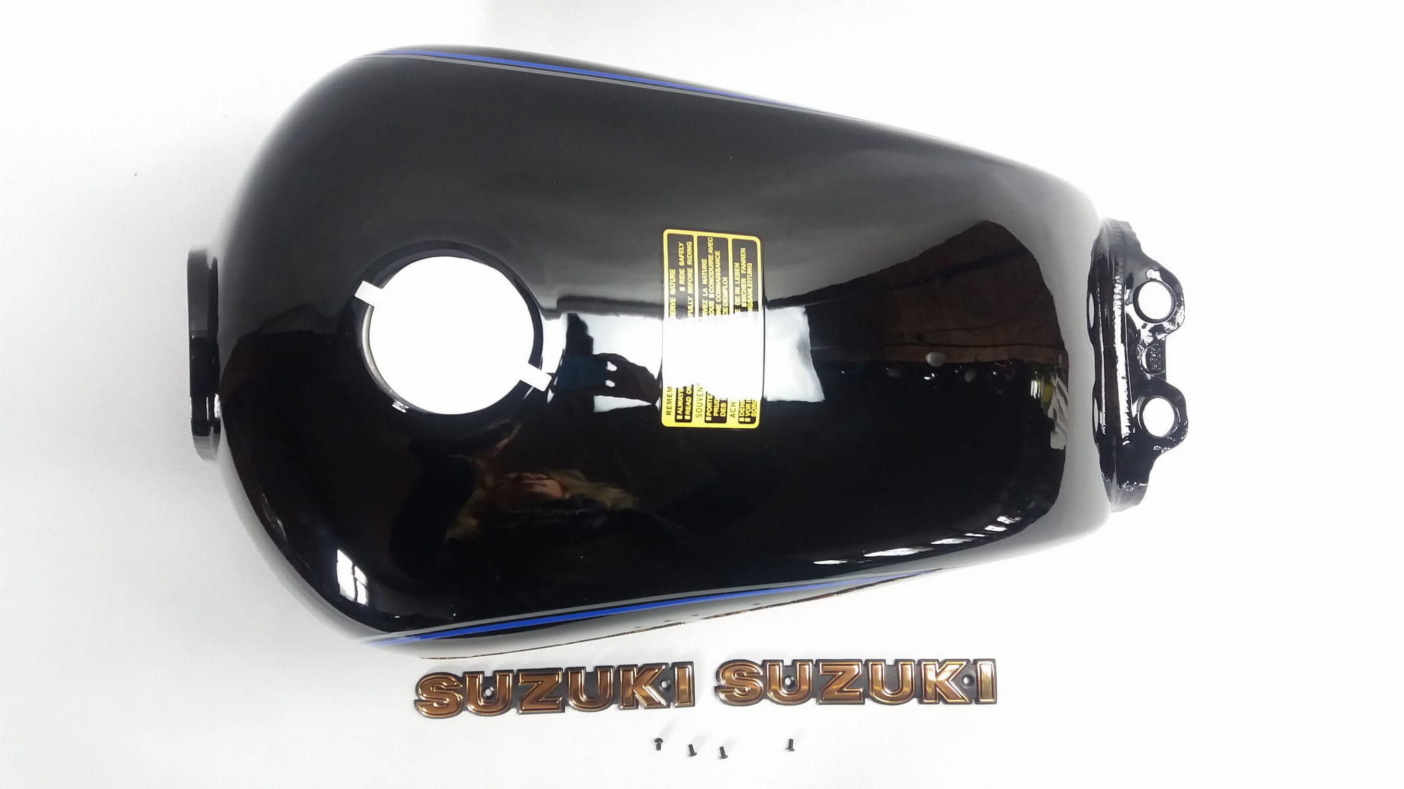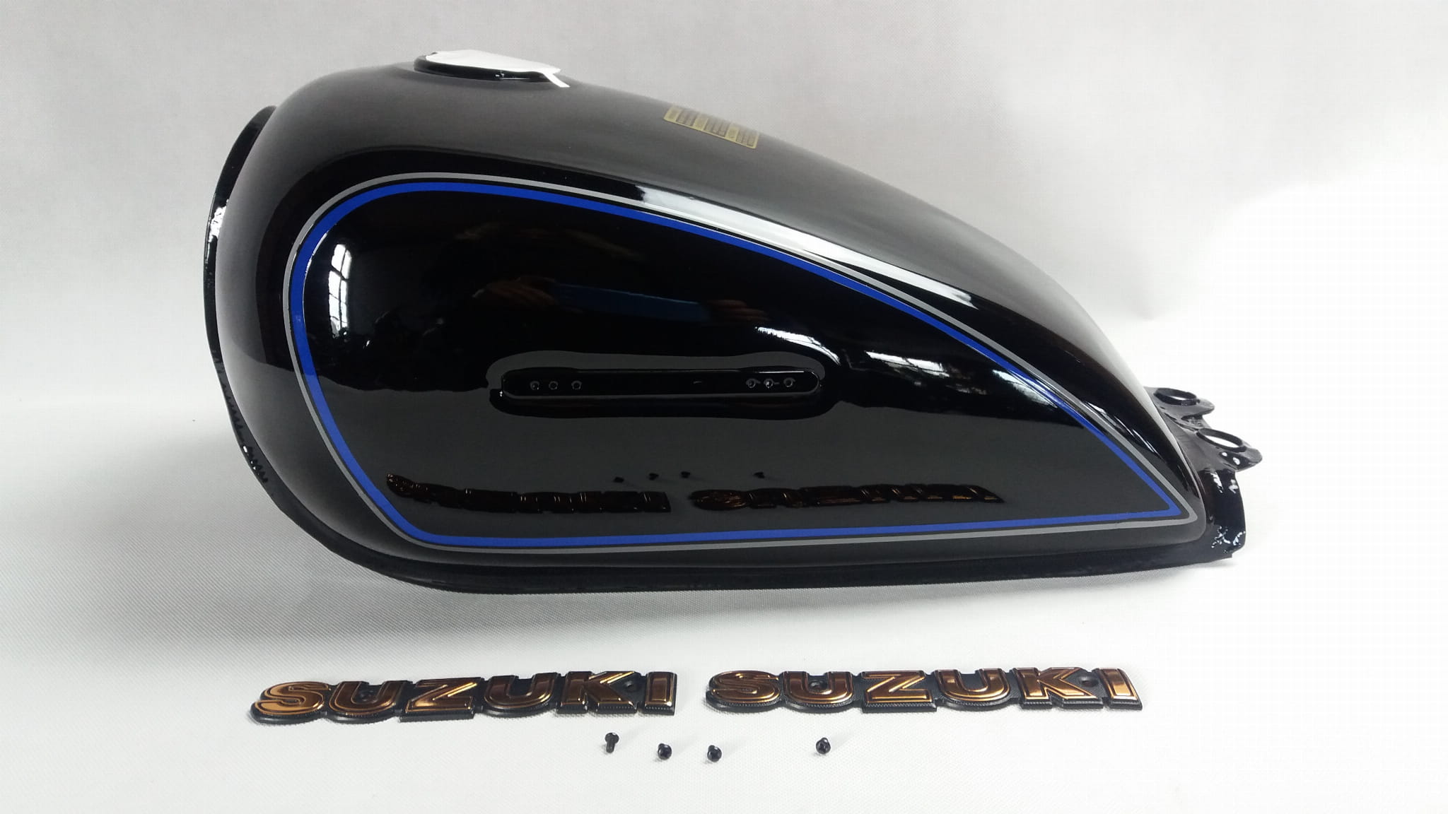 - nowy zbiornik paliwa pomalowany tak jak na zdjęciach. Kolor czarny z niebieskimi pasami.