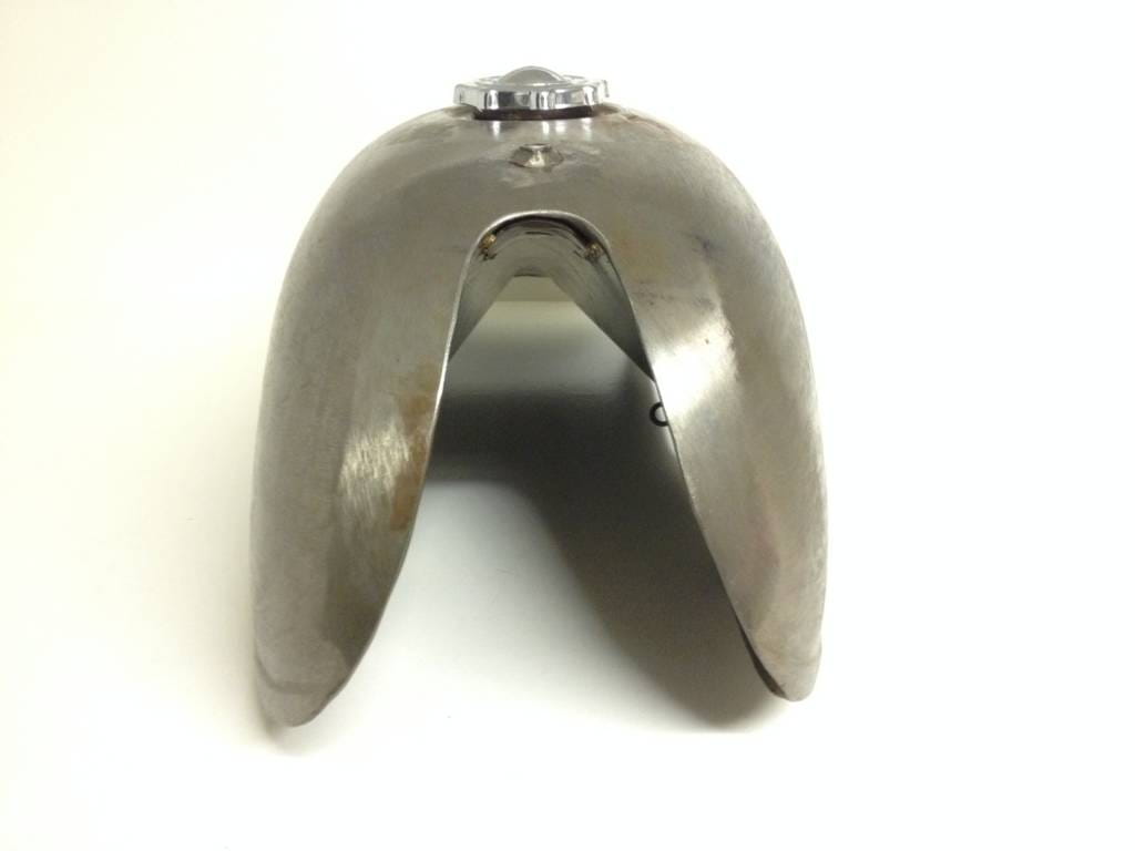 Stalowy zbiornik paliwa. Idealny do modyfikacji np. Yamahy Virago. Możliwość adaptacji pod dowolny motocykl z ramą grzbietową. Do samodzielnego malowania. Sprzedawany bez osprzętu, brak kranika, wlewu i korka paliwa - te dostępne są w kategorii "produkty powiązane".