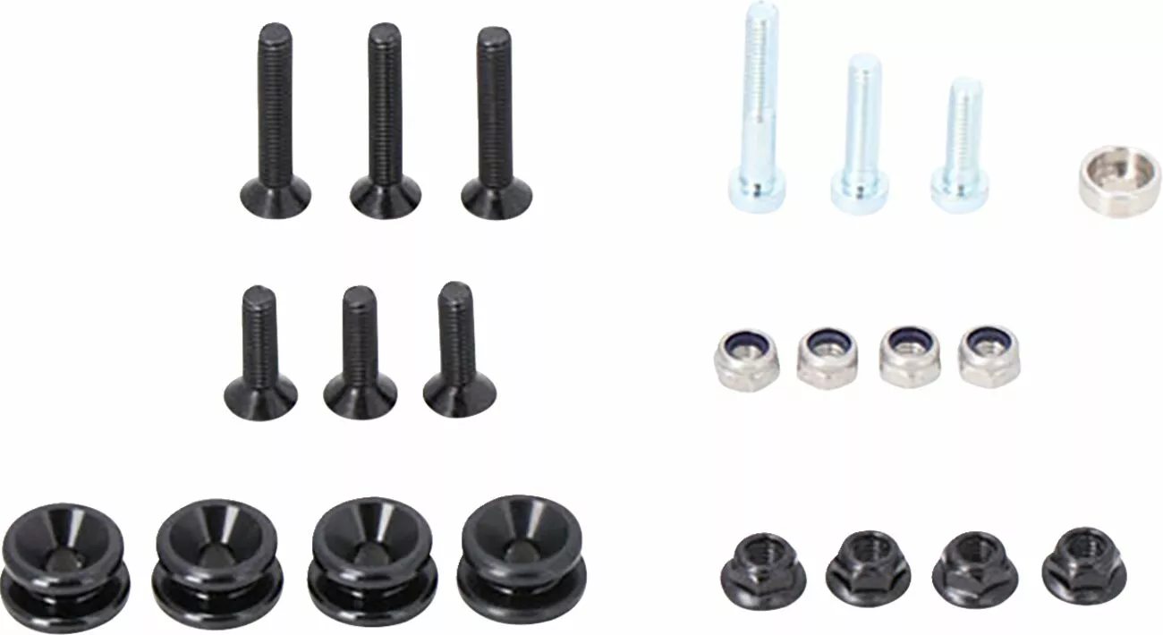 Zawiera cztery zestawy krzywek ustalających i materiały montażowe, każdy odpowiedni dla jednego bagażnika bocznego PRO, bagażnika bocznego EVO lub stojaka -