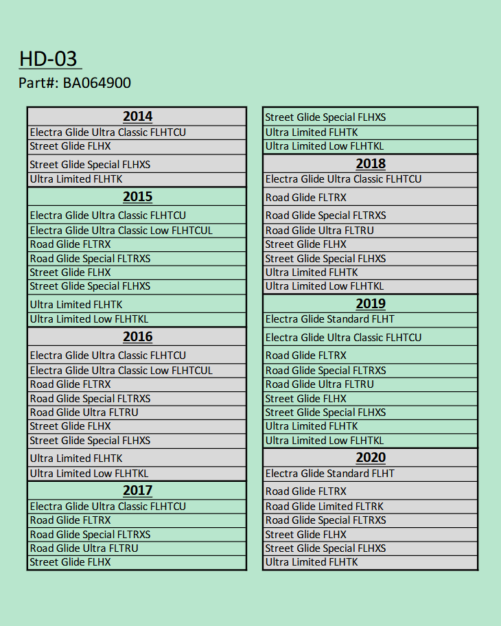 - Davidson® FLHX, FLTC i FLTR od 2014 do 2020 roku