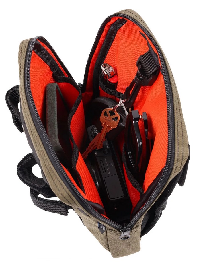 - Front Velcro Pocket Expands and is lined with microfiber material, great for sunglasses or electronics.