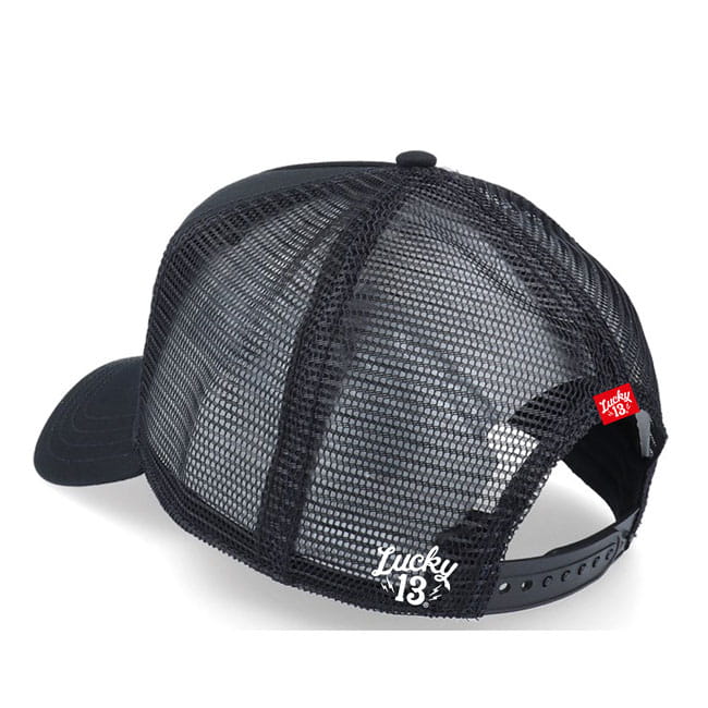 lucky 13 Monster trucker hat black motocyklowa czarna czapka z daszkiem z customowym motocyklem cafe racer