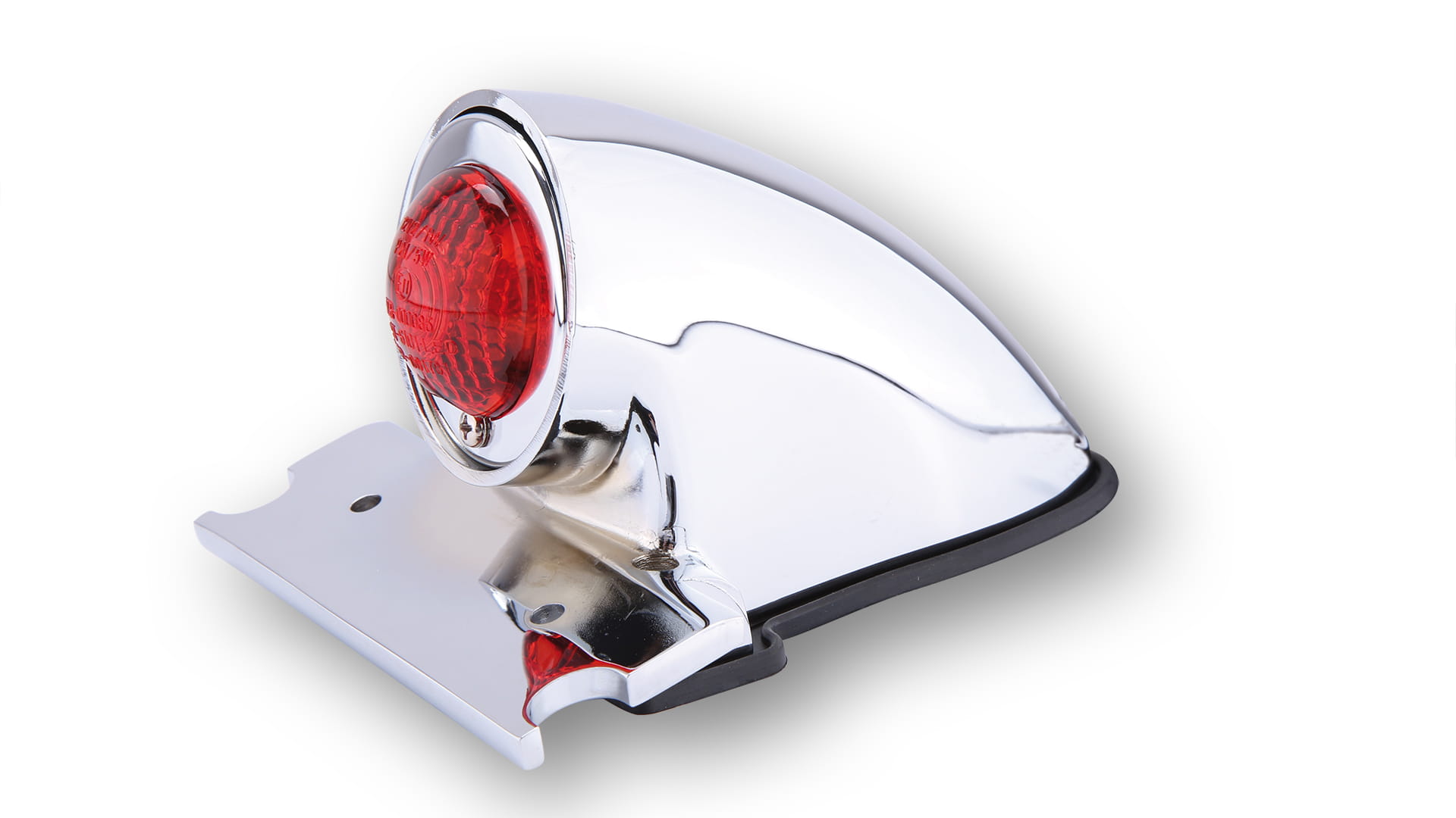 Światło tylne Sparto, chrom + mocowanie tablicy rejestracyjnej. Posiada homologację EU. Bez oświetlenia tablicy rejestracyjnej.